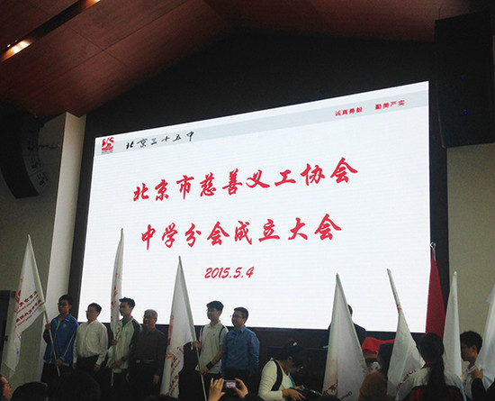 4日是五四青年节,国内首个慈善义工协会中学分会——北京市慈善义工协会中学分会在北京市第三十五中学成立。包括北京三十五中、北京四中、人大附中等20余所中学名校成为中学分会首批会员。