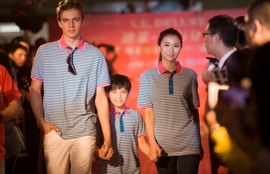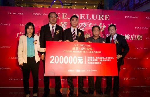 2013年3月8日广百股份有限公司与长兴国际旗下V.E.DELURE迪莱品牌于广百百货天河中怡店举办 “广百之夜--迪莱2013慈善之旅启航·爱与分享”活动。乒乓球世界冠军刘诗雯、许昕身穿迪萊冠军礼服亲临现场支持善举,他们身穿的礼服除了保持迪莱(V.E.DELURE)一贯的高雅气质外,还秉承了迪莱男装选料上乘、制作严谨的优良传统,一直深受各界人士的推崇,这次为礼服提供的优质面料,使礼服温暖舒适,正好配合「慈善之旅」的爱心主题。透过本次爱心活动,愿更多贫困学校孩子的梦想得到放飞,有更好的机会接受艺术教育,将来为社会贡献自己的一份力量。