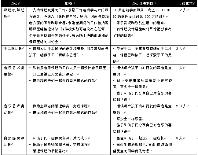 我们寻求对教育、对公益有探索热情的你一起加入"七日创造营"。我们希望你信任孩子的能力,有一颗开放的善良的心灵,唇红齿白(说话负责的意思),脑手协调(做事认真的意思),能承诺参加7月12日的培训,8月2日的准备会,和在8月3-10日期间住宿在密云西湾子村的自然教育基地参与工作(活动由基金会资助,志愿者无需缴纳在密云期间的食宿交通费用)。