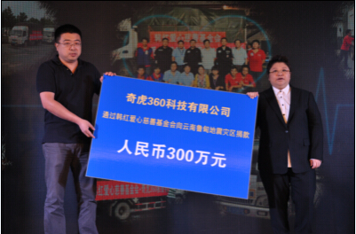 8月7日下午,韩红爱心慈善基金“百人援青”大型公益医疗行动在北京日坛宾馆举行新闻发布会暨启动仪式。同时,为紧急应对云南鲁甸发生的地震灾情,“韩红爱心 奇虎360”救灾备灾救援队也在发布会上正式成立。此前,360公司采取应急响应并通过韩红爱心慈善基金会捐赠300万人民币,360搜索紧急上线并开通“云南鲁甸地震寻人平台”。截止6日19时30分,共提供寻人数据840条,报平安1056条。