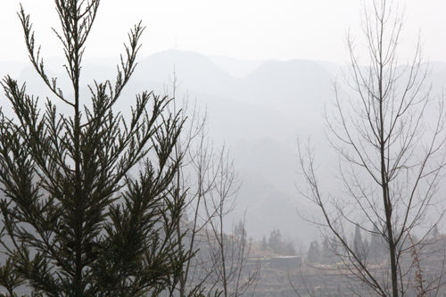 从小红家门口望去,远处重峦叠嶂。这是一个海拔1000到2000米的地区。生存条件恶劣。