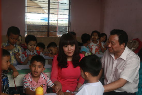 在此次献爱心公益活动中,又走访了农民工幼儿园、中缅小学,中缅小学没有操场,教室也很狭小,但是同学们都很认真读书,我们给学校捐赠了电脑和文具。感谢炫风情国旅、感谢亚珠宝联合会翡翠研究会缅商会长、云南省珠宝协会瑞丽缅商协会会长彭觉先生、亚洲珠宝联合会翡翠研究会顾问、云南省音乐家协会会员曾岳青先生、振山翡翠总经理姜振山先生、云南省瑞丽市悦善暄收藏董事长黄云先生对此次活动的支持!