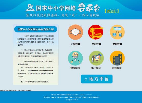 为支持全面打赢防疫阻击战,中国移动等企业积极配合教育部上线了 “国家中小学网络云平台” 。该平台主要服务全国1.9亿中小学生居家学习,保障中小学校“停课不停学”。截至目前,该平台已上线一周,系统运行畅通。