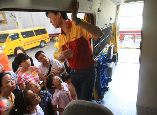 员工子女参观中外运敦豪南区服务中心。图为他们正在聆听作业中心负责人的讲解。2011年,德国邮政敦豪董事会主席兼首席执行官安澎先生(Frank Appel)亲自宣布启动UPstairs全球员工子女资助项目,并在南非、墨西哥、印度尼西亚和罗马尼亚试实施助学资助。目前,全球已有600多个奖学金获得者。2013年,德国邮政敦豪将为139个国家的员工子女提供1200个奖学金名额。