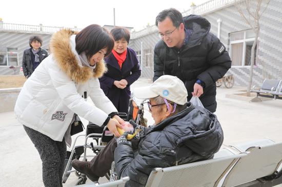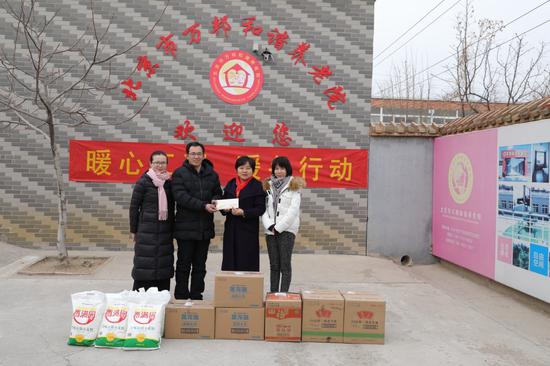 2018年2月8日, 中国社会福利基金会秘书长缪瑞兰,老龄和综合公益事业部主任刘芳,爱老助老基金秘书长王晓一行前往北京大兴万邦和谐养老院,为老人送去慰问金和暖心物资。