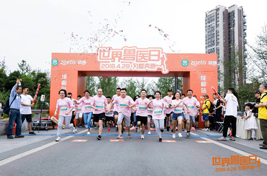 2018年4月28日,为庆祝第十八个世界兽医日的到来,中国兽医协会携手硕腾中国在北京、上海、广州、成都四城同时举行了第三届“世界兽医日 为爱奔跑”大型公益活动。在本次活动的主会场北京奥林匹克森林公园,农业农村部兽医局王功民副局长及硕腾中国宠物事业部总监李毅女士出席开幕式并致辞,中国动物疫病预防控制中心陈伟生主任启动庆祝活动,中国兽医协会辛盛鹏秘书长主持开幕式。