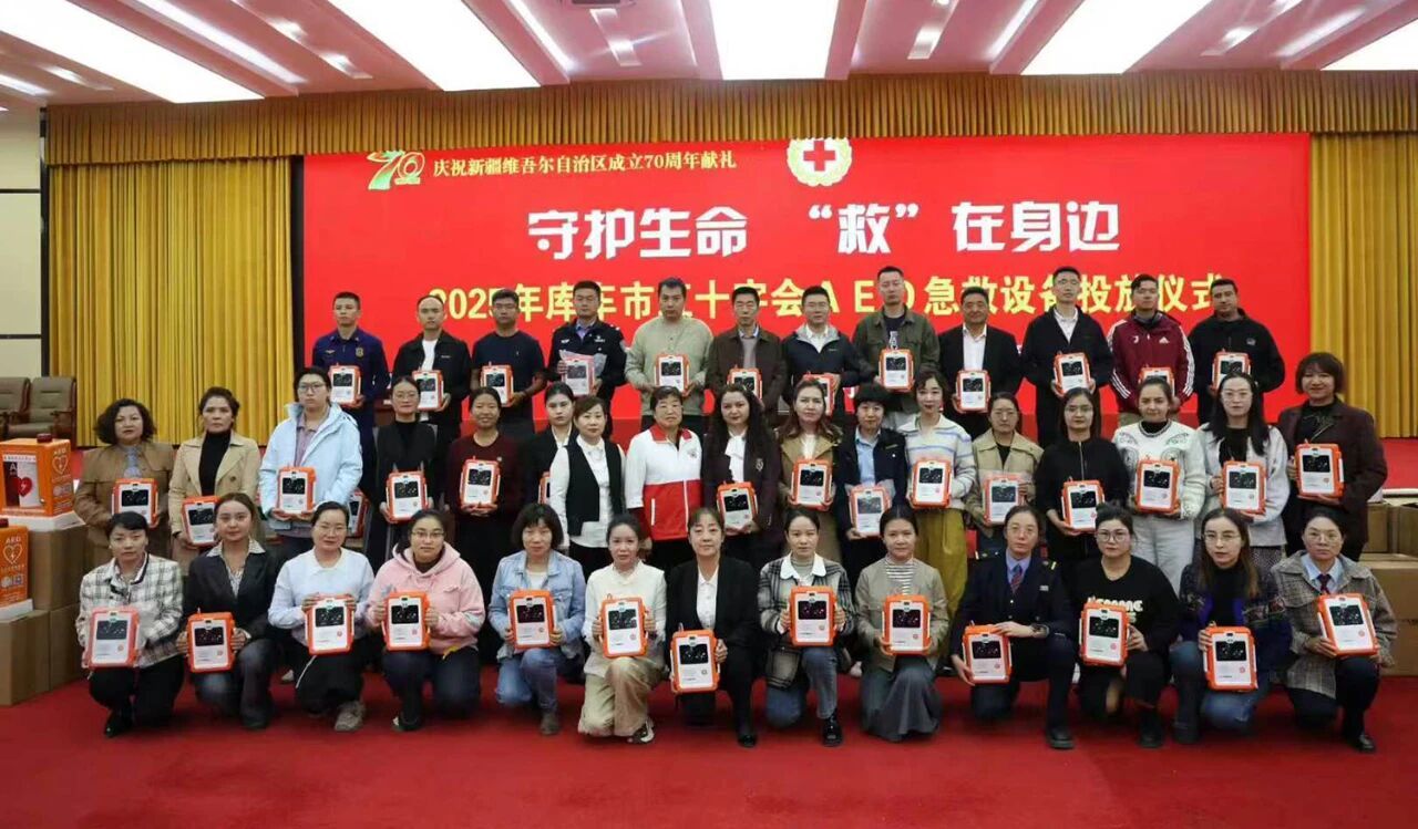 近日,在宁波市援疆指挥部的大力支持下,库车市红十字会成功举办“守护生命·‘救’在身边”体外除颤仪(AED)投放仪式,133台设备被投放到库车市各类人员密集场所。