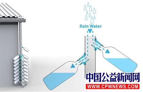 雨滴系统可以很好的收集自来水洗手。透光的塑料瓶可以通过紫外线的照射去除雨水中引起疾病的微生物。