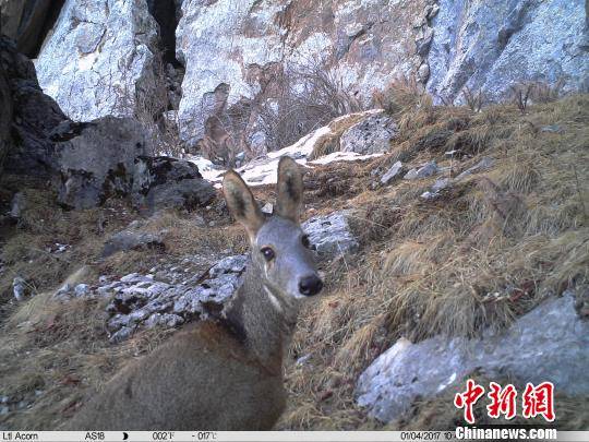 资料图为红外相机记录到的马麝影像。山水自然保护中心提供