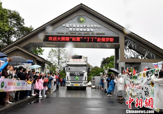 中新网雅安4月29日电 (王鹏 安源)由中国国家林业和草原局指导,中国野生动物保护协会、中国大熊猫保护研究中心、俄罗斯莫斯科动物园主办,雅安市人民政府协办的大熊猫“如意”“丁丁”赴俄罗斯欢送仪式29日在中国大熊猫保护研究中心(简称保护研究中心)雅安碧峰峡基地举行,两只大熊猫当日上午正式启程前往俄罗斯。