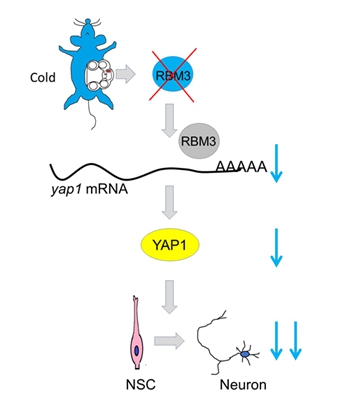 该项研究工作近期以Cold-induced protein RBM3 orchestrates neurogenesis via modulating Yap mRNA stability in cold stress(DOI: 10.1083/jcb.201801143)为题发表于J Cell Biol。夏文龙为论文第一作者,焦建伟为论文通讯作者。该项研究得到中科院先导专项、科技部国家重大科学研究计划、国家自然科学基金的支持。
