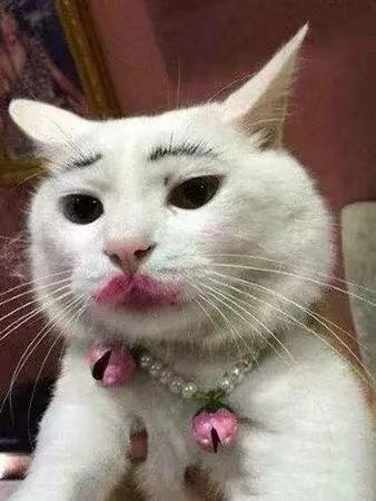 据美国《世界日报》报道,去年,一位网友在北美社交网络上说,她的室友趁她不在,给她的猫化了妆还拍照上传到网络。好好一只白猫,被涂上了红色口红、韩式平眉和腮红。