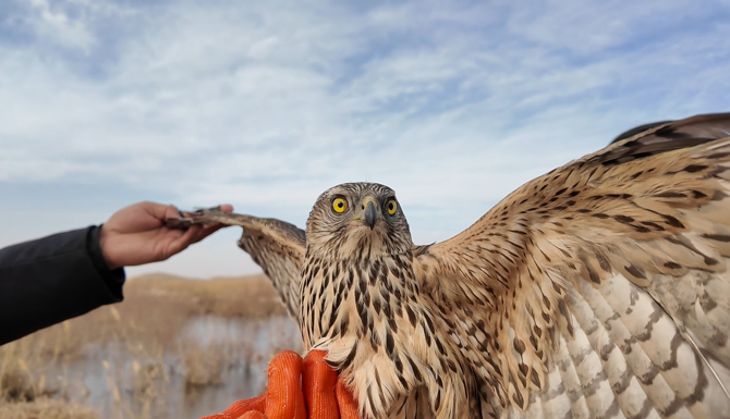 近日,墨玉县林业和草原局工作人员在生态环境优良、食物资源充足的区域,将一只经过精心救治的国家二级保护动物苍鹰顺利放归自然。