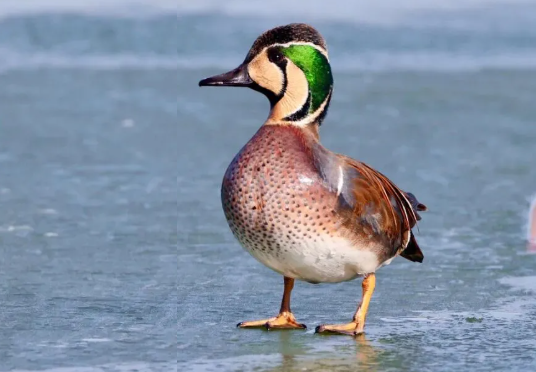 花脸鸭因雄鸭脸上如同京剧脸谱般黄、绿、黑、白交织的绚丽花纹而得名。图/“首都园林绿化”微信公众号