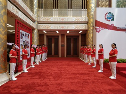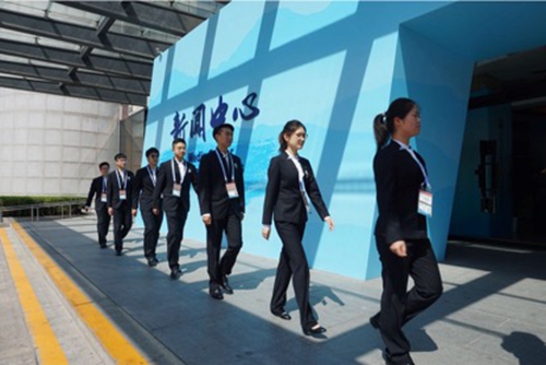 除此之外,在本次峰会中,北大志愿者还承担了一项特殊的任务。在9月4日召开的“中非携手抗艾 共享美好未来”主题会议上,国家主席习近平夫人彭丽媛与各国元首夫人共同展望中非青年抗艾前景。8名北京大学志愿者承担了本次会议场内外的礼宾引导服务。他们在20天内经历了两次专业礼仪培训和三次上岗演练,会议当天,从佩戴红丝带到引导入场,一项项工作井然有序,充分展现了新时代北大青年的良好风貌。