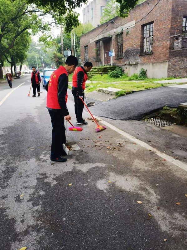 红网时刻新闻4月10日讯(通讯员 欧润生)4月7日上午,在衡阳市珠晖区东风街道苏州湾社区的马路上,有一群人身穿印有“衡阳群众”字样的红马甲,手拿扫帚、铲子等清扫工具,挥汗如雨地清理着马路上掉落的树叶和垃圾。原来,他们是衡阳市体彩分中心的志愿者,在分中心主任胡荣峰的带领下,正在进行开展志愿服务活动。