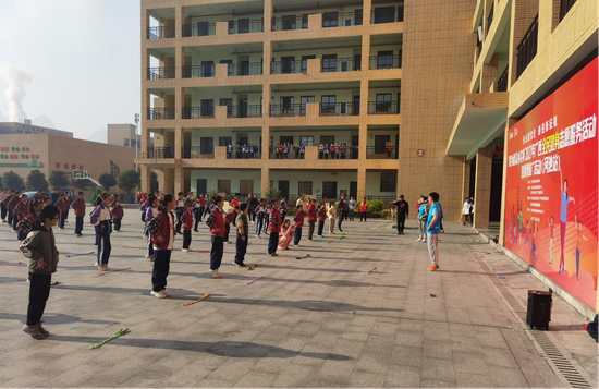 中新网广西新闻12月23日电 近日,“我为群众办实事”2021年广西全民健身志愿服务活动(河池站)在河池市环江毛南族自治县思源小学举行。
