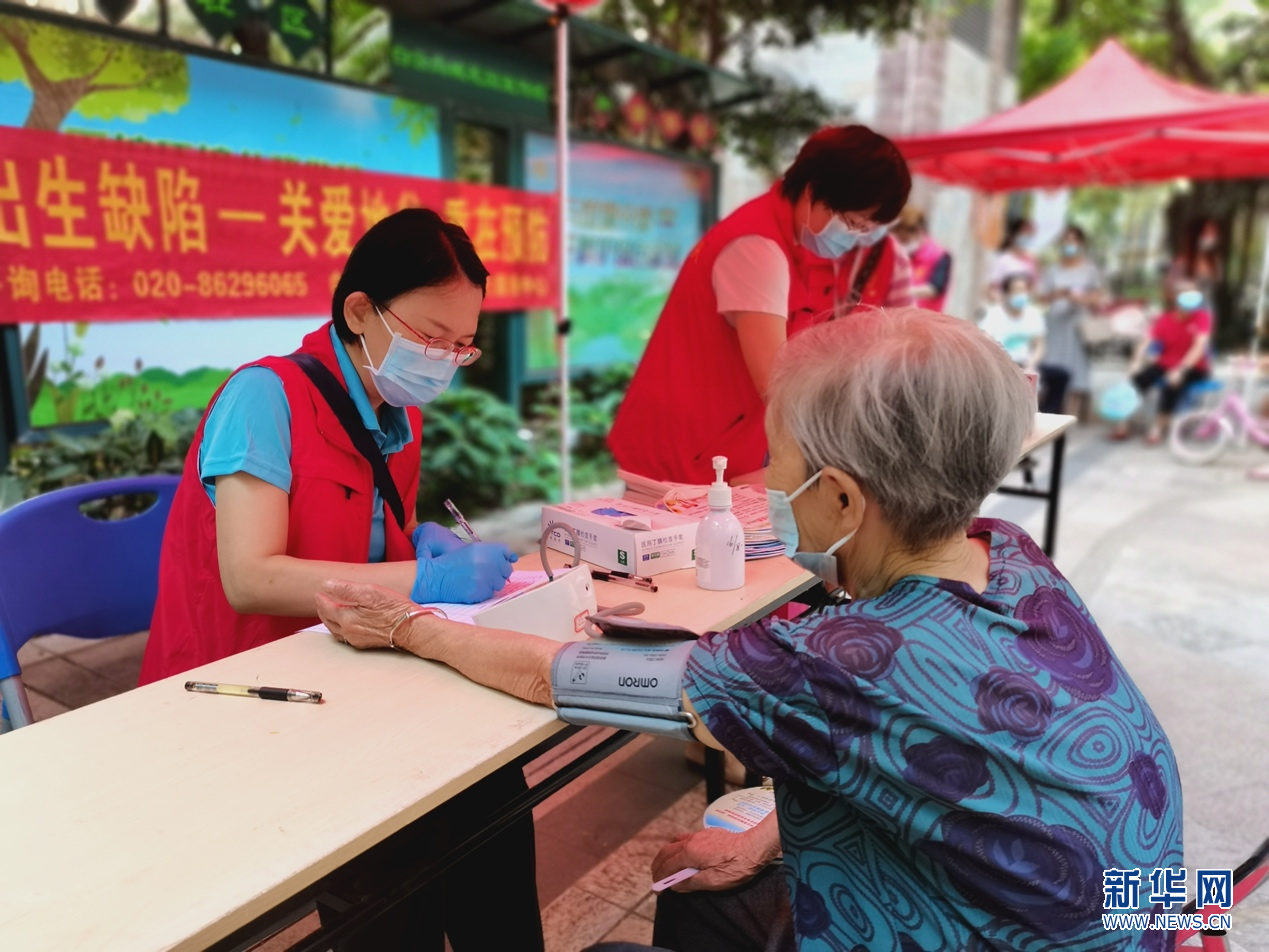 志愿者在对长者进行义诊。何家贵摄。新华网发
