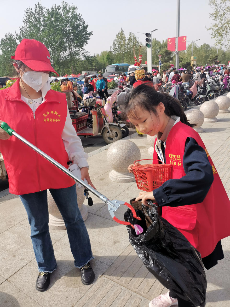 正值花会期间,游人众多,中华联合财险菏泽中支志愿者统一身穿红马甲在曹州牡丹园劝导乱吐口香糖、乱扔垃圾等不文明行为,向来往游客普及文明旅游知识,引导游客按规定停放车辆,协助交警维持交通秩序。有的志愿者带上孩子一起参加志愿活动,随行的小小志愿者们,也是个个兴奋,积极捡拾垃圾,体验了全民参与做志愿的快乐和荣誉感。