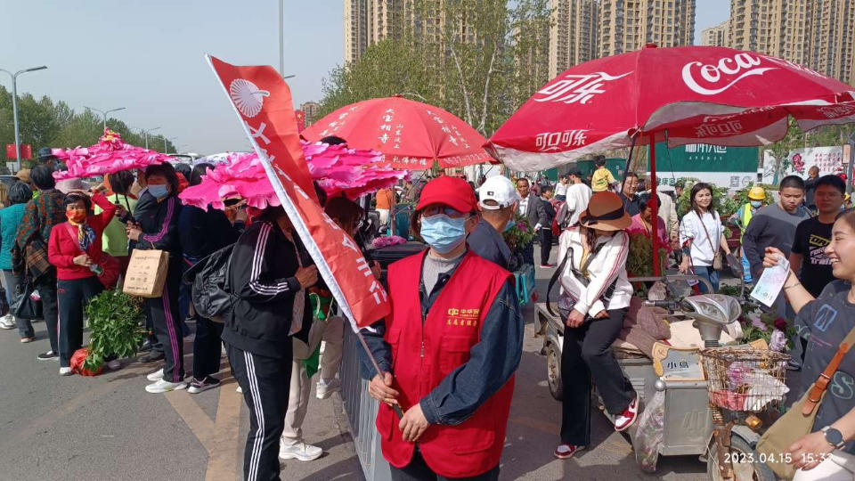 人间最美四月天。为保障菏泽牡丹花会顺利开展,4月15日中华联合财险菏泽中支组织人员前往曹州牡丹园开展“牡丹花开”文明旅游志愿服务活动。