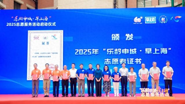 为激励全市广大老同志投身志愿服务事业,上海市委社会工作部、市委老干部局对邓玉萍等142名表现突出的离退休干部志愿者予以通报表扬。活动现场,上海慈善基金会、复旦大学创新创业学院两家单位正式加入支持阵营并获授牌。同时,数百名新招募的“导银志愿者”、“老年活动室寻访”志愿者及社区协理员代表接过2025年度志愿者证书,为“早上海”注入新生力量。