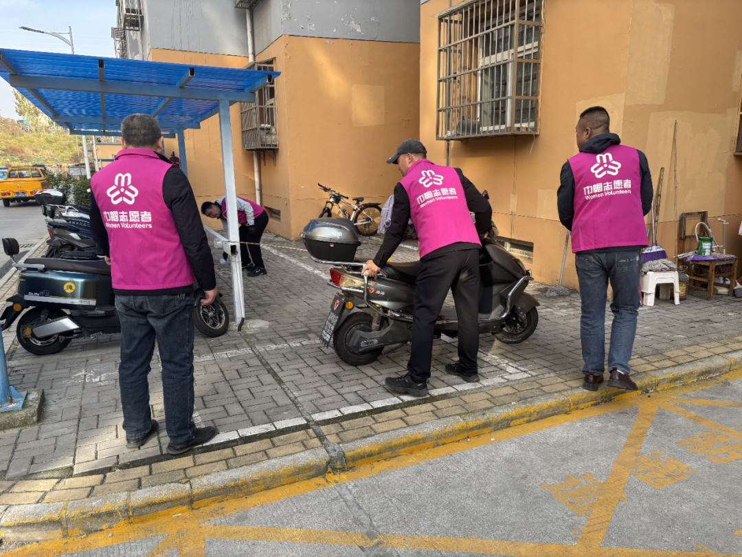 针对社区内电动车乱停乱放、堵塞人行便道等问题,巾帼志愿者们迅速行动,全面排查了社区内消防通道、单元门口、主次干道等重点区域,对随意停放的电动车逐一挪至指定停放地点,整齐摆放到位,并向过往居民宣传文明停放的重要性和乱停乱放可能引发的安全隐患,引导大家自觉遵守社区管理规定,共同维护畅通有序的社区环境。