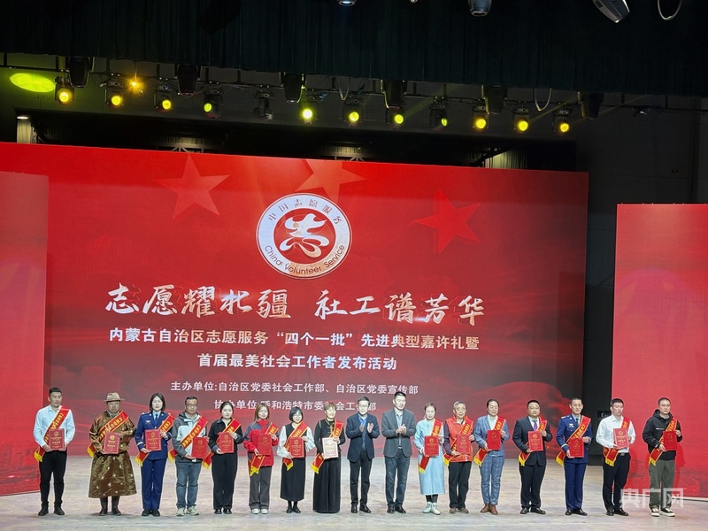 央广网呼和浩特11月20日消息(记者李春雪 实习记者张丽梅) 11月19日下午,内蒙古自治区志愿服务“四个一批”先进典型嘉许礼暨首届最美社会工作者发布活动在呼和浩特市举行。活动由自治区党委社会工作部联合自治区党委宣传部主办,先进典型代表、组织机构负责人、专家学者等共聚一堂,共同见证北疆志愿服务事业的发展成果。