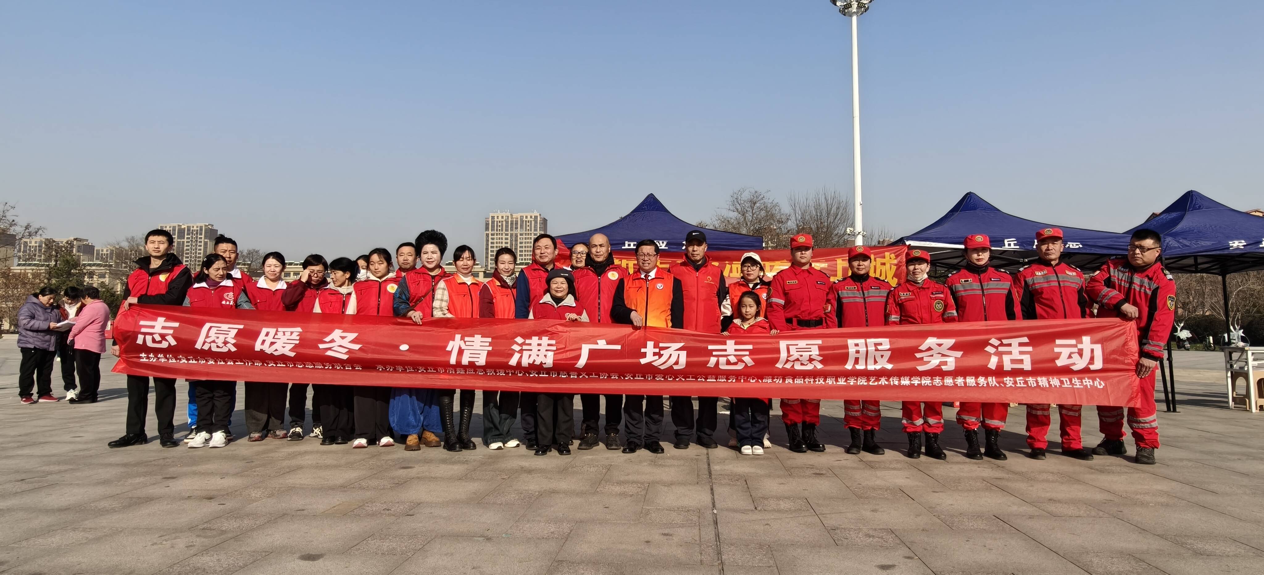 齐鲁网·闪电新闻12月1日讯为弘扬志愿服务精神,传递冬日温暖关怀,切实把贴心服务送到群众心坎上,11月29日上午,安丘市委社会工作部、安丘市残疾人联合会、安丘市志愿服务联合会等单位携手在安丘青云山广场联合开展“志愿暖冬·情满广场”系列志愿服务活动。