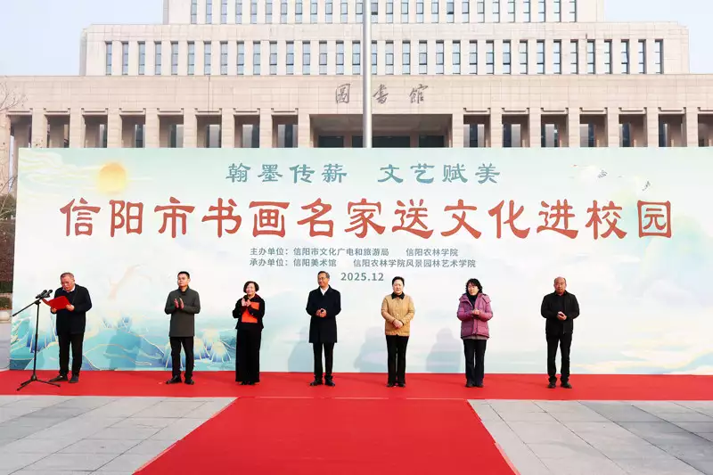 12月11日上午,由信阳市文化广电和旅游局与信阳农林学院共同主办,信阳美术馆、风景园林艺术学院承办的“翰墨传薪 文艺赋美”——信阳市书画名家送文化志愿服务活动启动仪式在信阳农林学院汝宁广场举行。