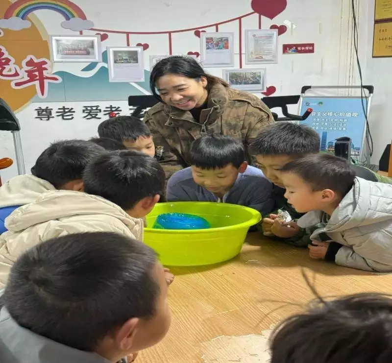 在“探索喀斯特地貌”环节中,资源与环境工程学院研究生团队开展地质科学实验。以贵州喀斯特地貌为依托,采用石膏粉、食用色素等安全材料,引导社区儿童搭建模型,通过水溶液淋溶模型模拟流水侵蚀现象,探究喀斯特地貌、石笋等地质景观形成原理和过程。实验过程中,志愿者详细讲解地貌形成化学原理与生态保护要点,用通俗易懂的语言讲解喀斯特地貌的形成原理,结合贵州本地的山洞、石林景观,引导青少年记录分析实验现象,培育科学思维与探索能力。