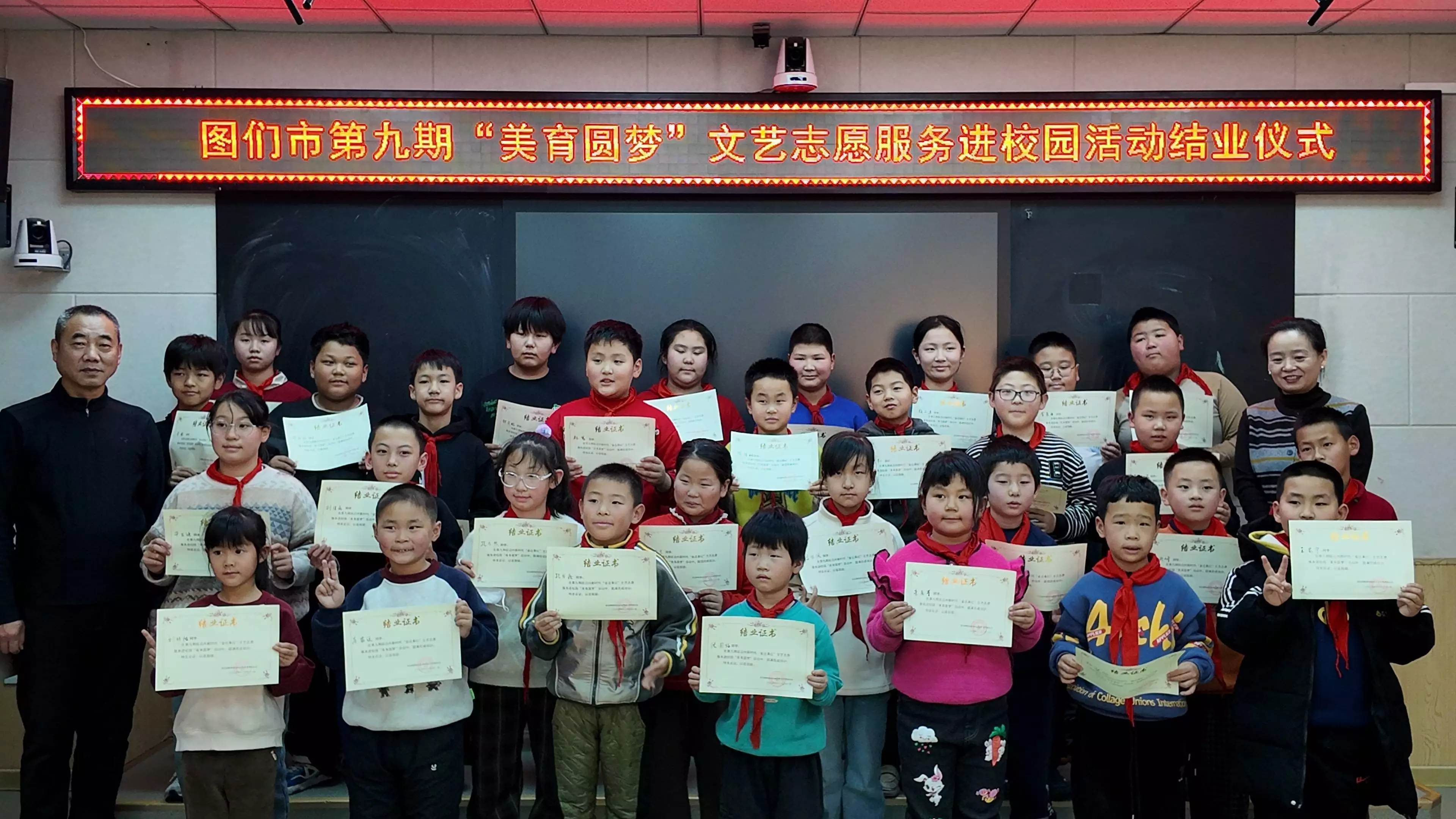 12月26日,图们市第九期“美育圆梦”文艺志愿服务进校园活动结业仪式在凉水镇中心小学举行,为本学期历时数月的美育志愿服务活动画上圆满句号。