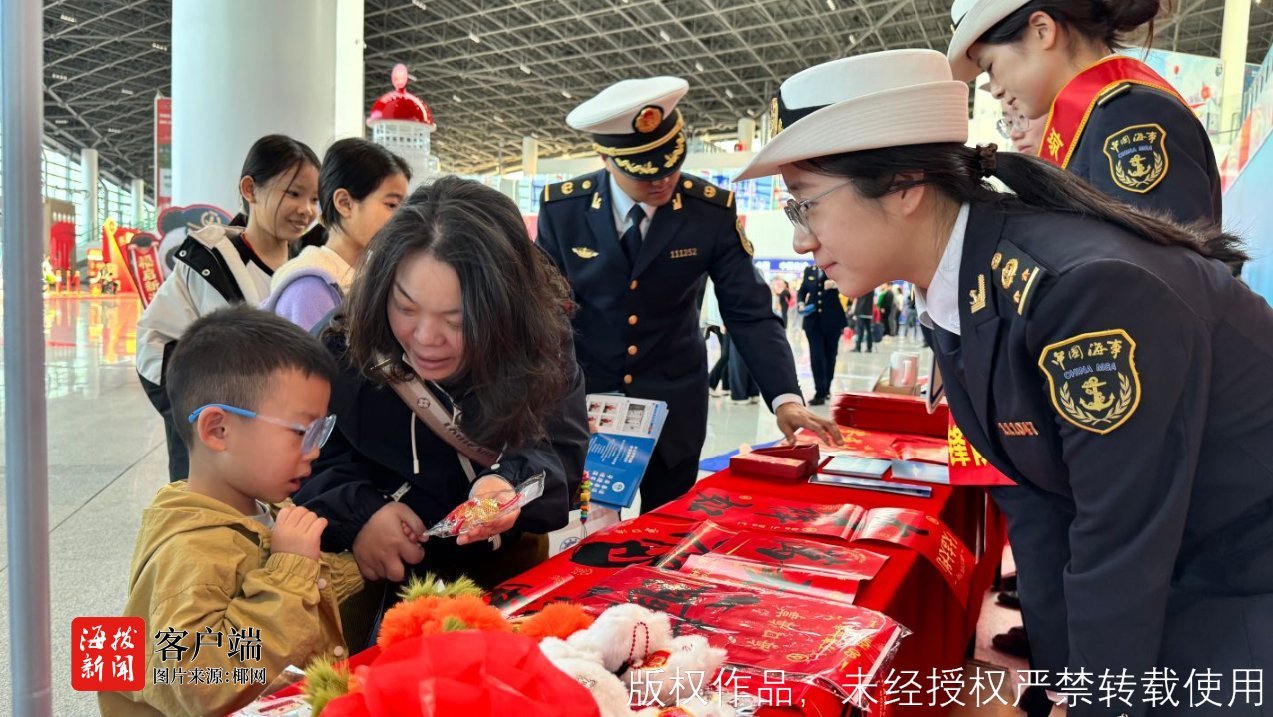 今年活动的一大亮点是创新推出“海事+”随船服务。青年志愿者们将温馨服务从码头延伸至海上航程,在履行随船安全巡查职责的同时,在客舱内为旅客提供面对面出行答疑、安全知识宣讲等服务,并用客舱广播送上节日祝福,让“海事守护”的安心与温暖贯穿航行全程。此外,结合新春佳节,活动还设置了春运心愿墙、特色拍照打卡点,并向旅客赠送“海事文创暖心包”,为繁忙的春运旅途增添浓厚的节日温情。