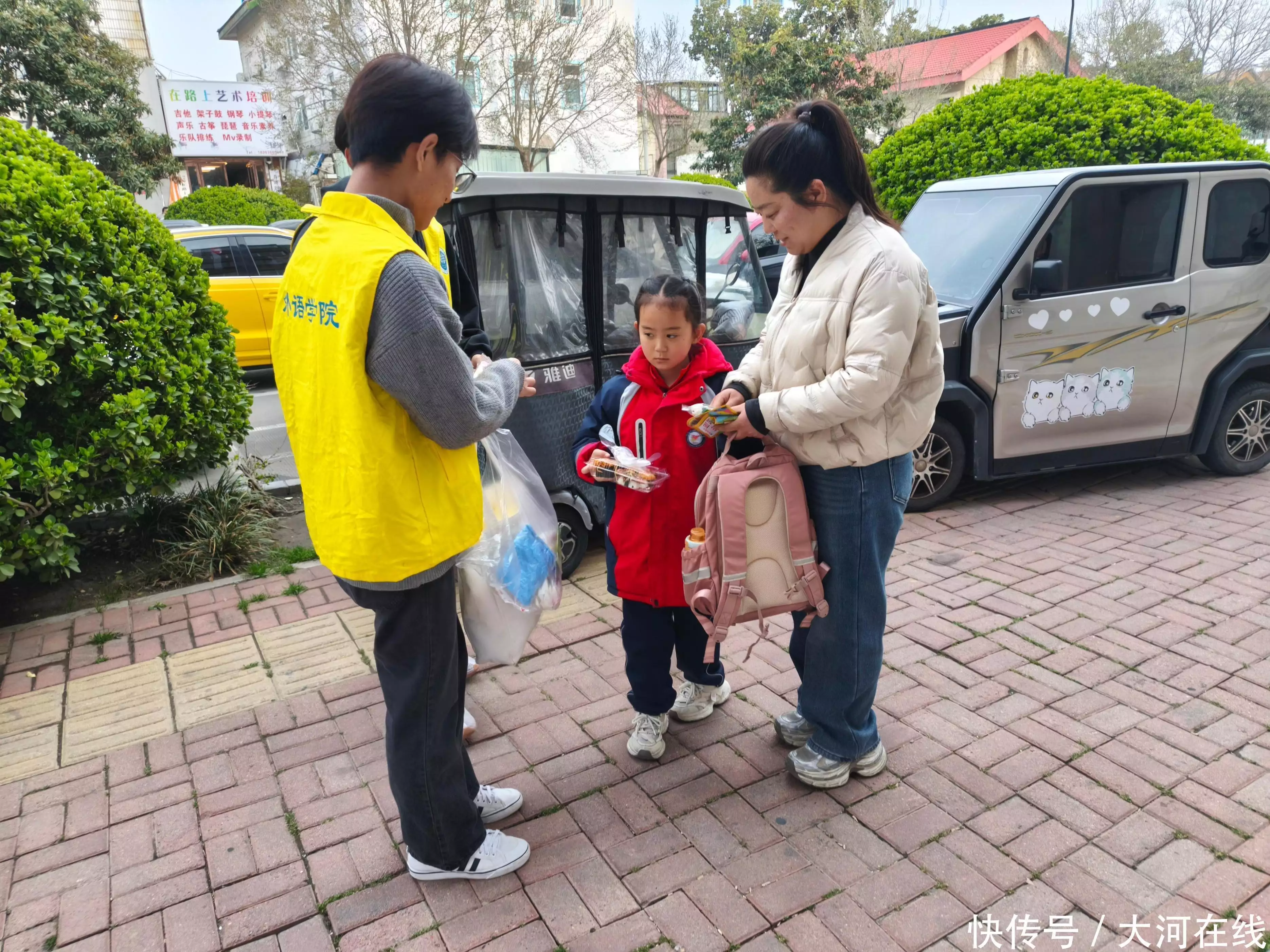 在关爱儿童环节,志愿者为辖区小学生发放铅笔、水彩笔等学习用品,鼓励孩子们勤奋学习、快乐成长;向家长发放纸巾等便民物品,传递贴心关怀。