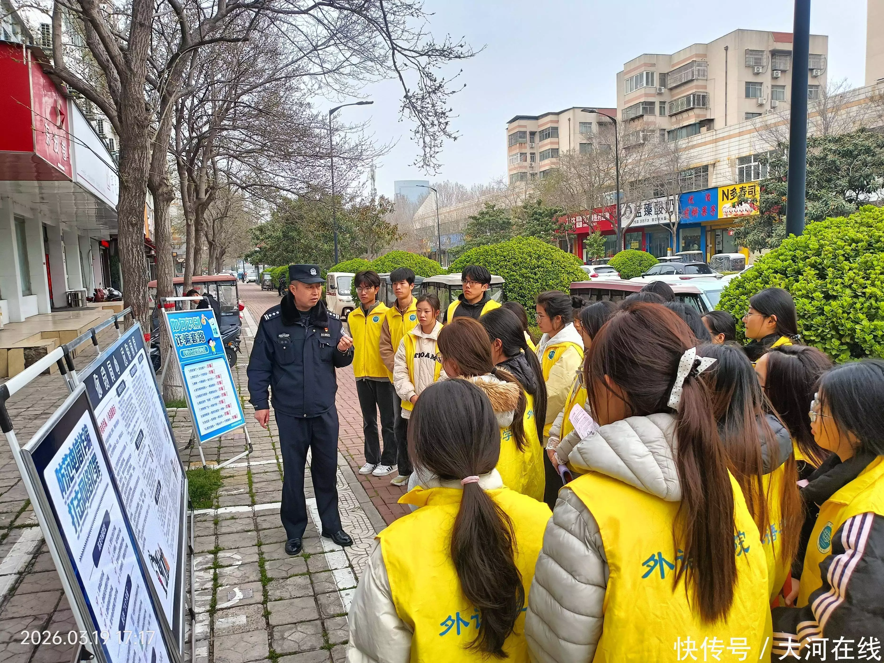 为深入弘扬雷锋精神,切实提升辖区群众安全防范意识与法治素养。3月19日,开封市城乡一体化示范区金明池街道团工委、妇联联合河南开封传媒外语学院青协大学生志愿者,在街道辖区周边开展反诈宣讲、普法维权、关爱儿童、环境整治、文明交通一体化志愿服务活动。金明区派出所民警受邀到场开展反诈专题授课,以“警社校联动”模式,把平安、法治、温暖送到群众身边。