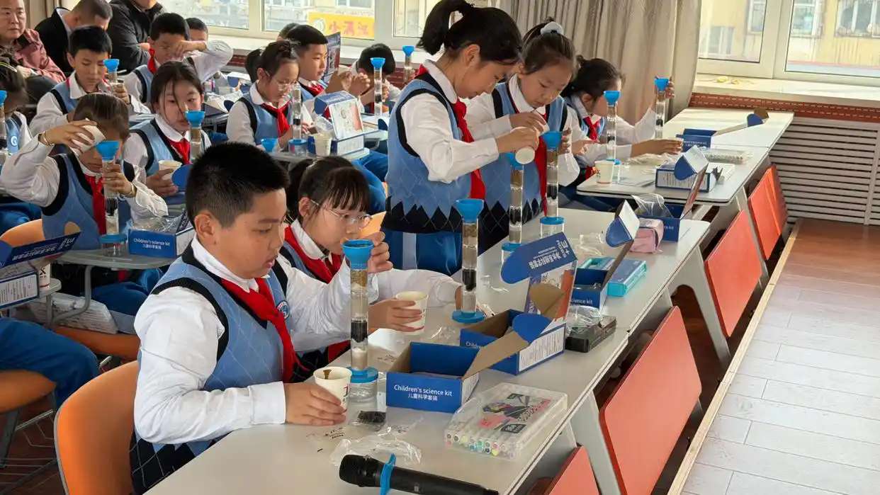 实验台展示区成为本次活动的人气打卡点,中环水务的技术人员现场为学生们讲解物理过滤、活性炭吸附、絮凝沉淀的净水过程,带领孩子们一同自制净水装置,过滤棉、活性炭、石英砂等材料在技术人员的指导下被一个个组装起来,学生不仅在动手组装净水装置的实践中深入理解净水原理,更激发了科学探索的兴趣与热情,体会到水资源净化的不易,懂得了珍惜每一滴水的重要性。